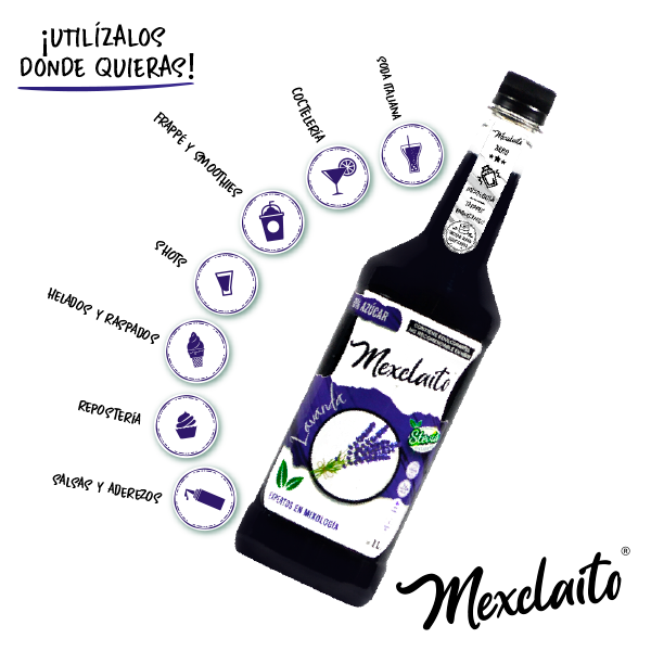 Jarabe sabor Lavanda Mexclaito con Stevia Endulzante.